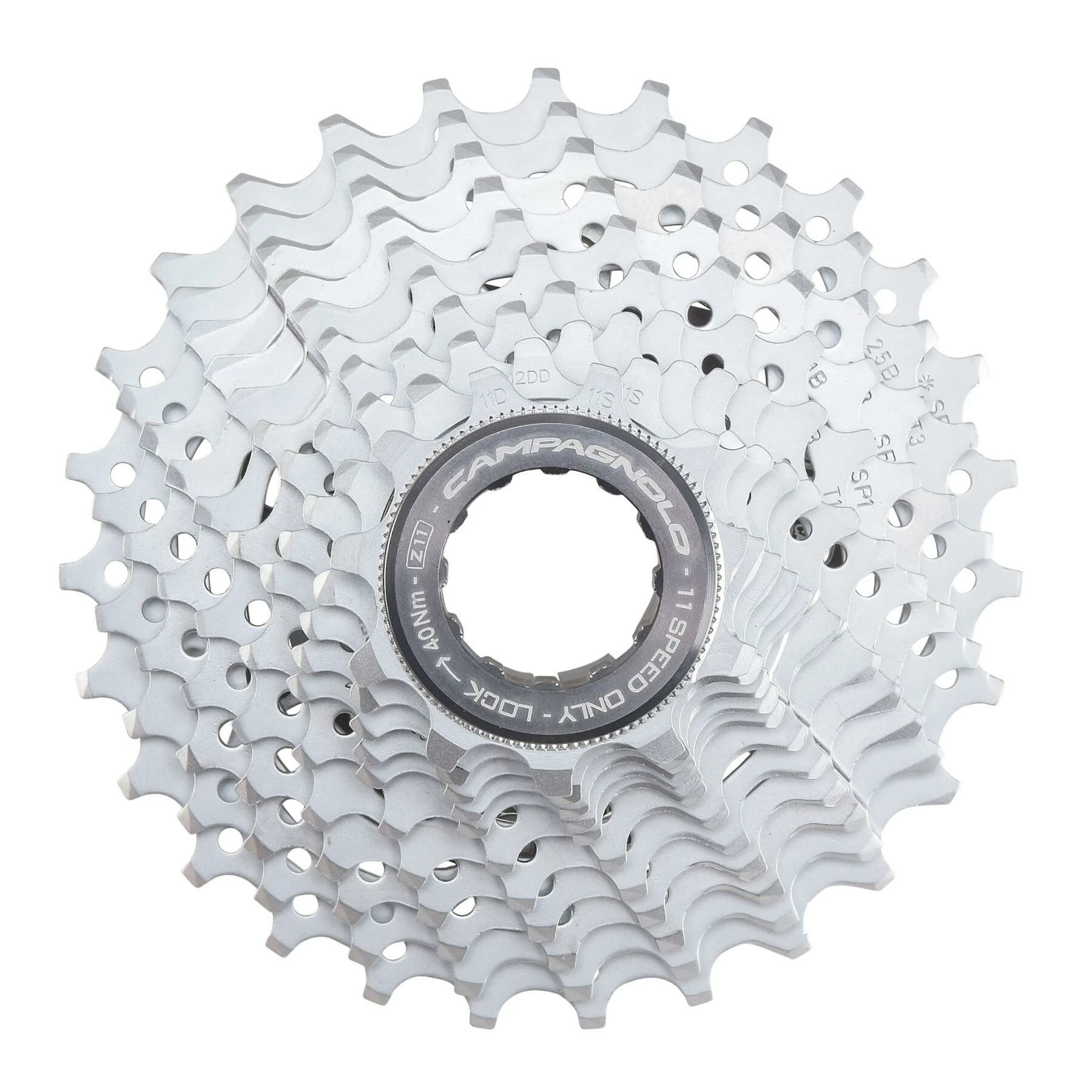 Cassette 11v CAMPAGNOLO® Chorus .pignon en acier et Ni/Cr-beschichtet .entretoise et anneau de serrage en aluminium .Version casette.Pignons en acier recouverts de Ni / Cr.