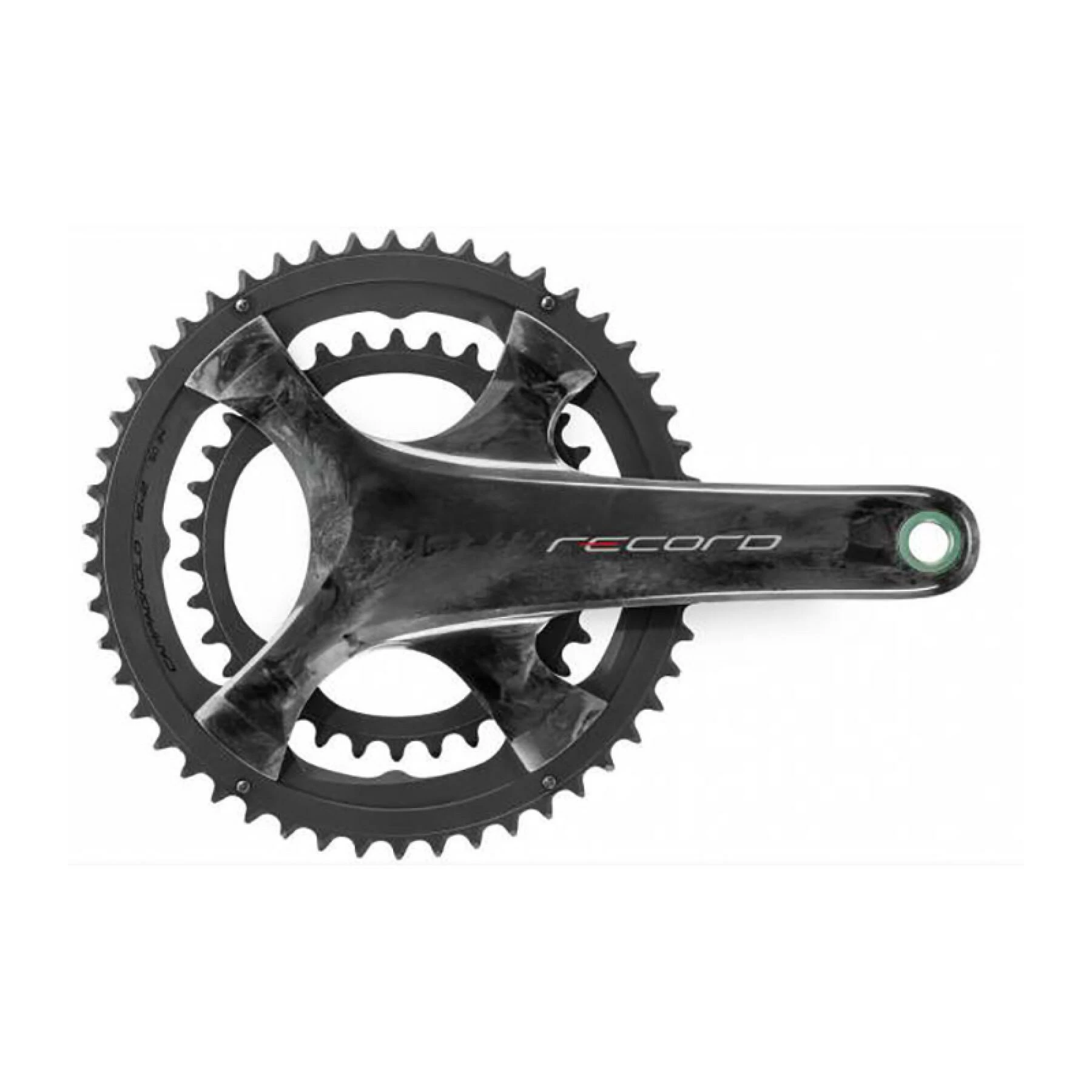 Le nouveau pédalier Record 12×2 Speed, en fibre de carbone avec finition unidirectionnelle pour garantir la plus grande continuité de finition sur le groupe, conserver le système Ultra-Torque de fermeture de l’axe en acier pour assurer une transmission parfaite de la puissance. Le nouveau pédalier Record 12×2 Speed peut être monté sur tous les types de cadre, qu’ils soient pour freins à disque ou autres, car il optimise la ligne de chaîne sur les cadres avec butée arrière de 130, 135 ou 142 millimètres sans influencer le facteur Q qui reste à 145,5 millimètres.