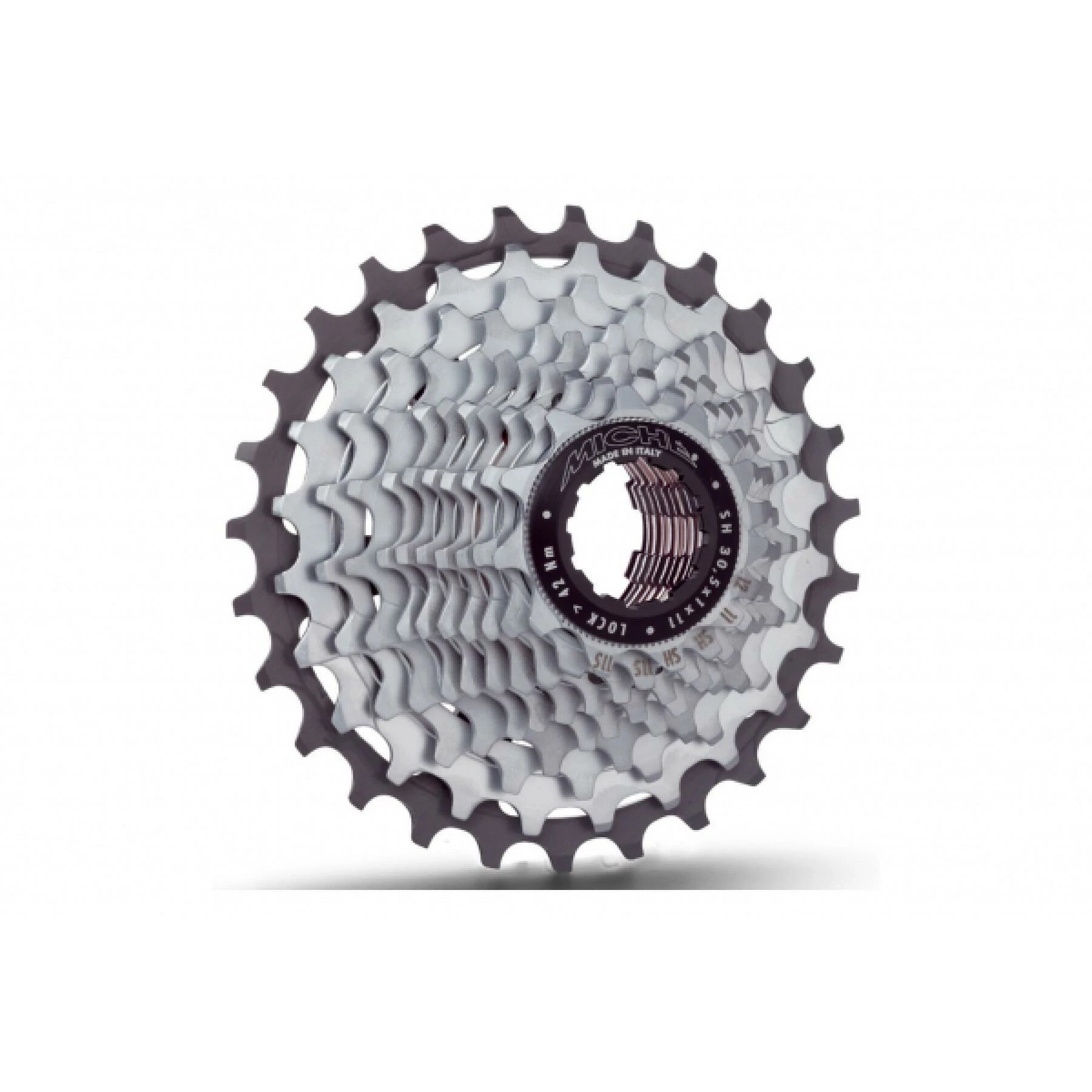 Cassette MICHE Light Primato 11 vitesses 1514D .poids réduit de 8-12% .premier et deuxième pignon en acier chromé mat .dernier pignon et écrou en AL 7075-T6 anodisépatible avec Campagnolo.