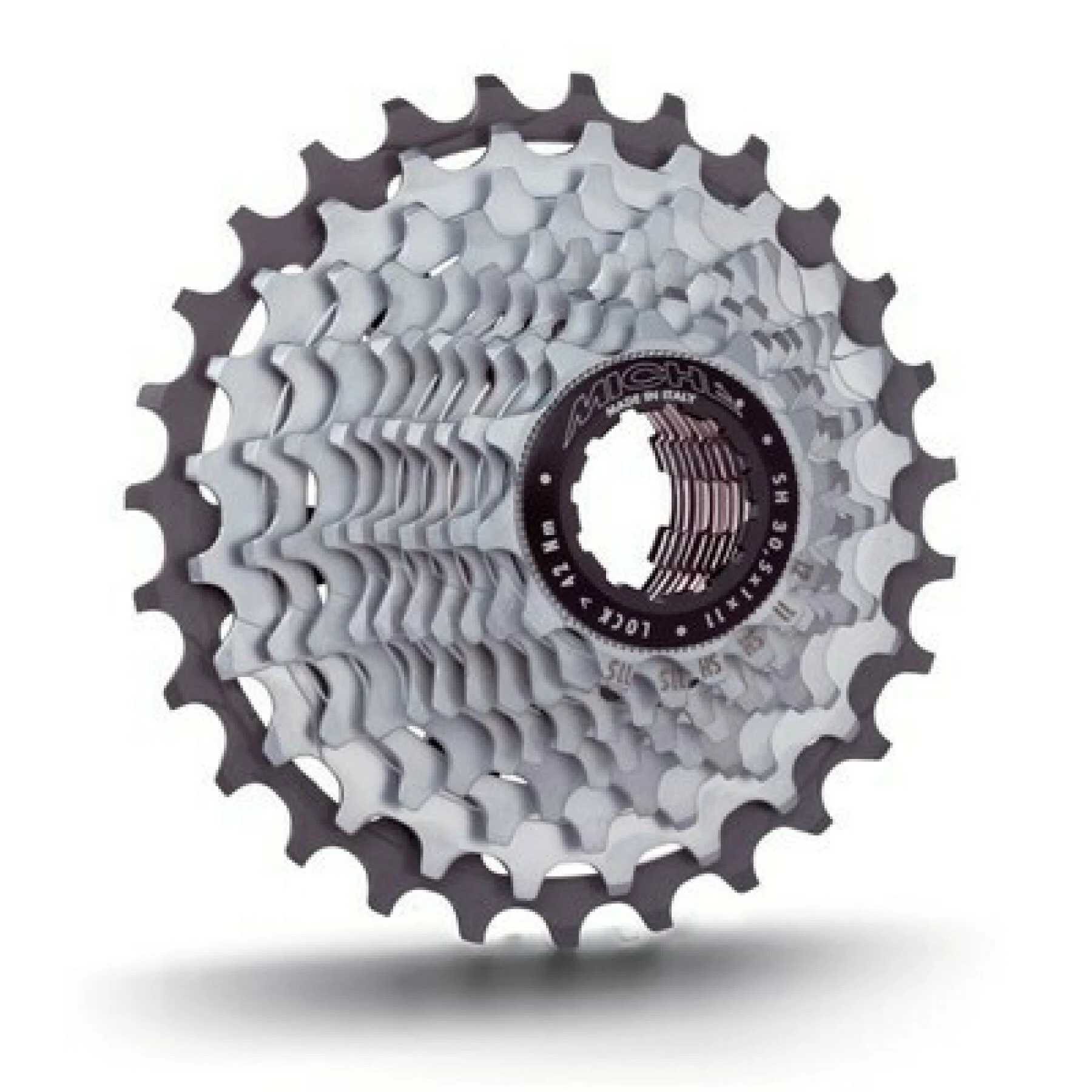 Cassette MICHE Light Primato 11 vitesses 1514H patible Shimano .poids réduit de 8-12% .premier et deuxième pignon en acier chromé mat .dernier pignon et écrou en AL 7075-T6 anodisé.