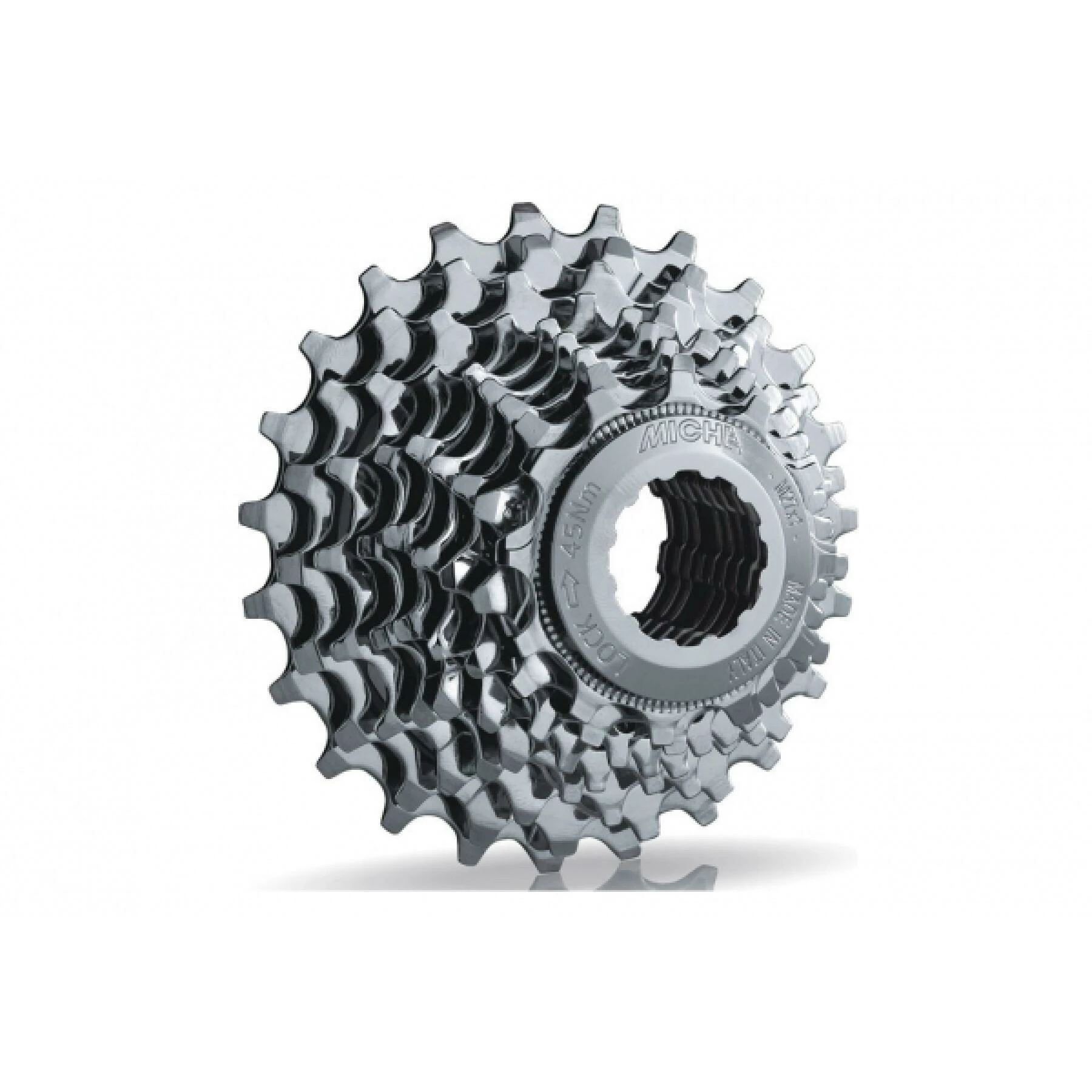 Cassette MICHE 9 vitesses Primato SH15141 patible Shimano .pignon et écrou en acier spécial chromé et traité thermiquement .entretoise en plastique.
