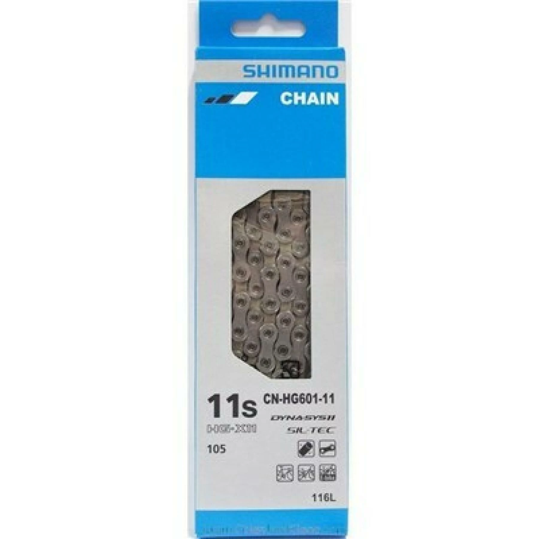 Chaîne SHIMANO 105 / SLX 11v 116 maillons argent.Traitement de surface à très faible friction SIL-TEC sur les plaques intérieures.Chaîne directionnelle HG-X11, ne peut être montée que dans un senspatible avec VTT, route et vélo électrique à 11 vitesses.Poids: 257 g (114 maillons).