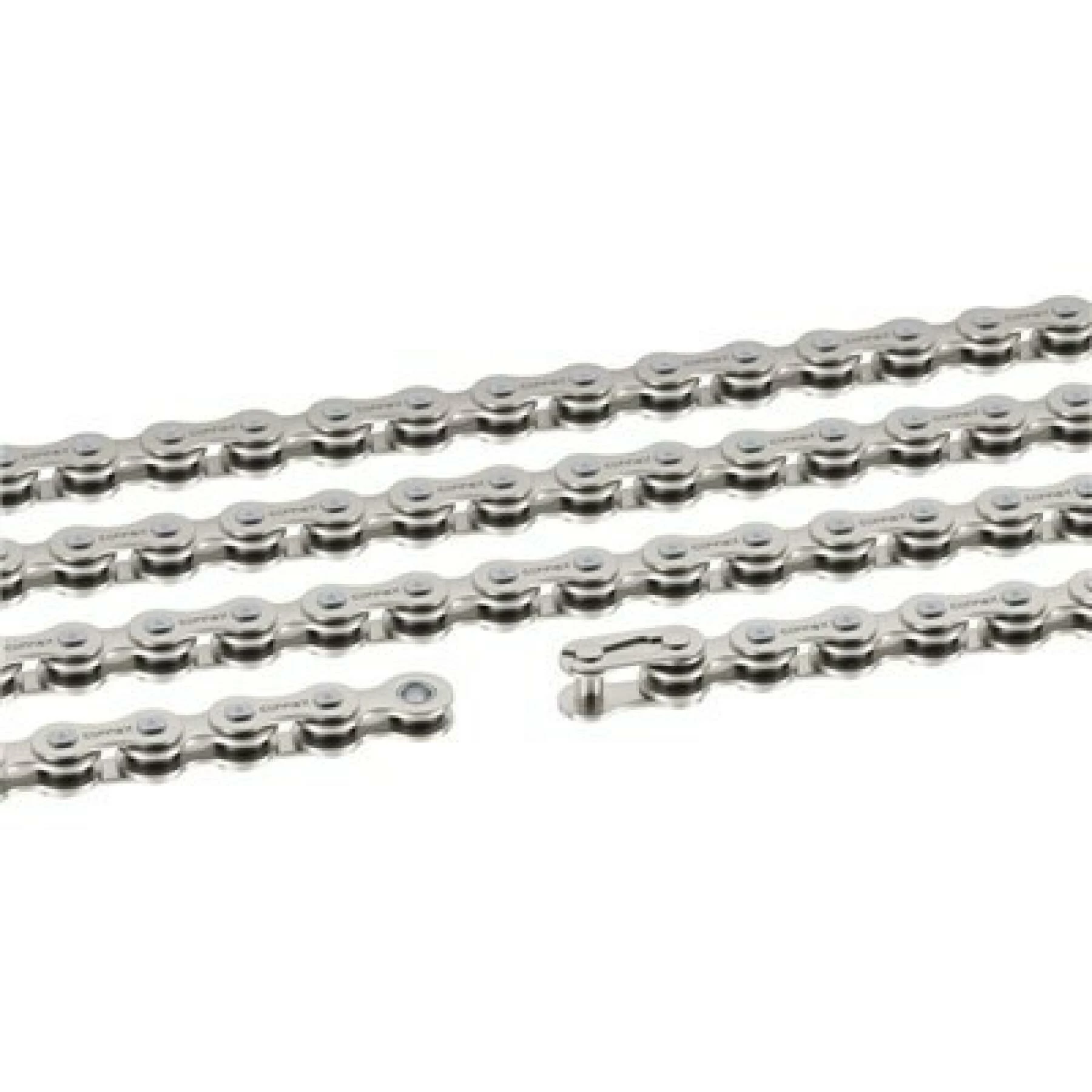 Chaîne WIPPERMANN Connex 7R8. Nickel renforcé.Des maillons renforcés transmettent la force de la pédale sans pertes par élongation.Le joint à douille garantit une faible usure et une longue vie.Poids: env. 438 g/112 maillons.