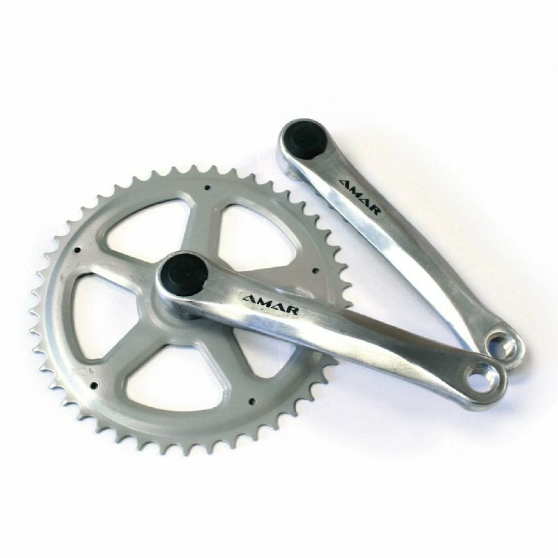 "Pédalier .manivelle: alu forgé à froid, 170mm .plateau: acier .emmanchement: carré (ISO) .couleur: satin .longueur boîtier conseillée: 119mm."