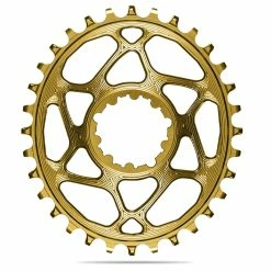 Le plateau ovale ABSOLUTE BLACK PREMIUM unique et inimitable compatible avec les manivelles SRAM Direct Mount BOOST 1x avec déport de 3 mm a été optimisé à 100% pour une utilisation avec les transmissions Eagle à 12 vitesses.Fabriqué en aluminium 7075 Txxx usiné CNCpatible avec tous les pédaliers SRAM GXP / BB30 Largo / DUB avec montage direct.Diamètre dans la zone la plus ovale du plateau (de l’extérieur vers l’extérieur des dents): 151 mm.Pour 10/11/12 vitesses.Couleur : Or anodisé.Poids: 66 g.